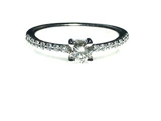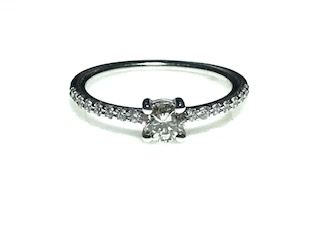 Anillo de oro blanco y brillantes tipo solitario cuatro grapas con piedra central de peso 0,30 quilates, color: Top Wesselton y pureza: Vs.