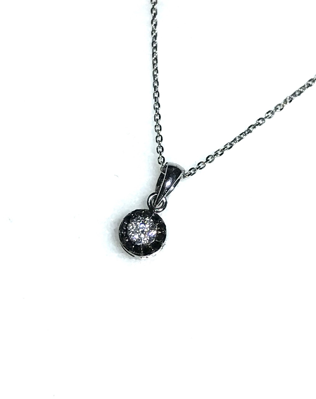Colgante de oro blanco con diamantes talla brillante de color blanco y negro.