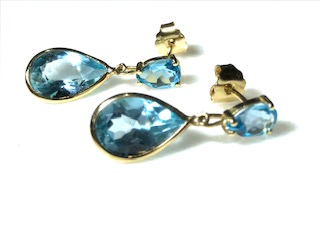 Pendientes de oro amarillo con topacios azules forma lágrima
