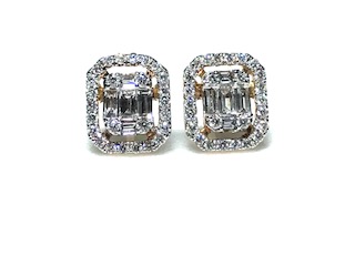 Pendientes de oro blanco y brillantes forma rectangular, formado por diamantes talla baguette y brillantes.