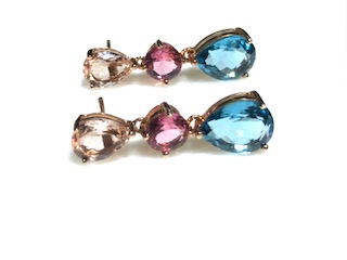 Pendientes de plata acabado oro rosa con piedras semi preciosas color