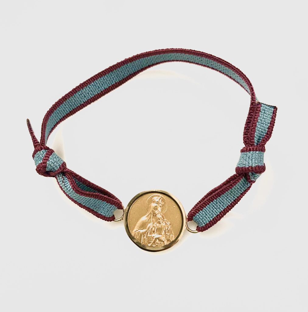 Pulsera medalla tipo escapulario de oro. Posibilidad de personalizar acabado, medalla y tamaño medalla.