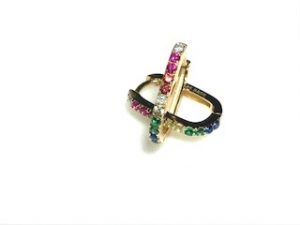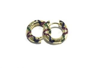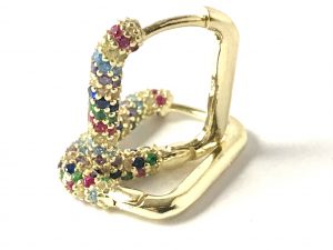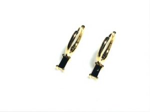 Pendientes de plata dorada tipo criolla con ónix baguette